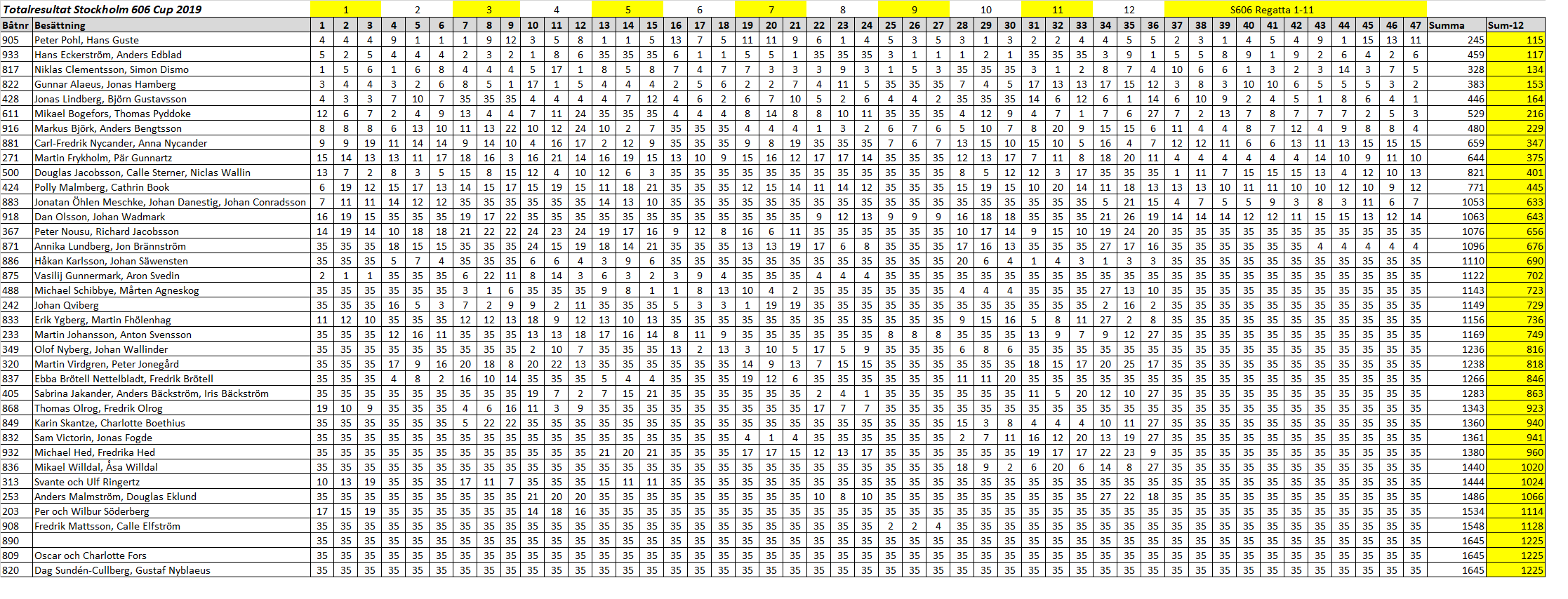 På andra plats, 2 poäng bakom, kom 933 med Hans och Anders. På tredjeplats seglade 817 in med Niklas och Simon.