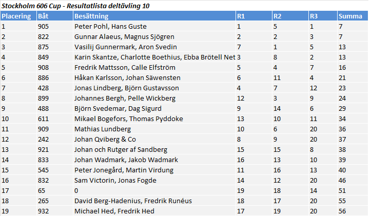 Total S606C efter 10 delseglingar 3 borträknade