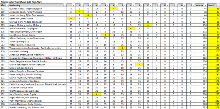 Totalresultat S606C efter 9 delseglingar med 3 borträknade