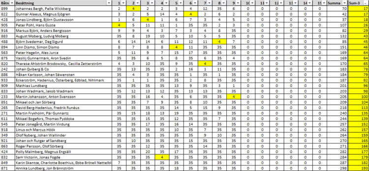 Förra årets vinnare Magnus och Gunnar i 822 går upp i ledning för första gången i år. Dock fortsatt extremt jämnt i toppen, speciellt med tanke på att 5 delseglingar kan räknas bort.